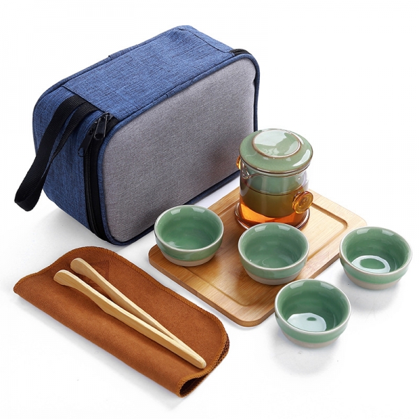 便携式哥窑茶具一壶四杯+茶巾茶夹茶盘旅行套装 实用的礼品