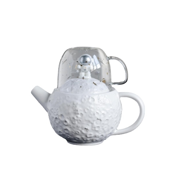创意宇航员星球茶壶套装 月球陶瓷茶壶+星空玻璃杯 潮流茶具礼品