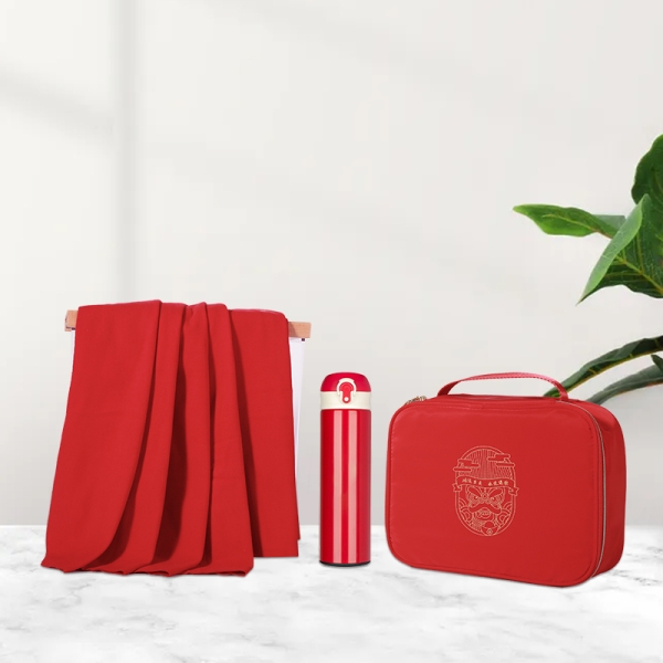 披肩毯有灰色、粉色、大红,保温杯有红色,黑色,收纳软箱有蓝色,红色,产品颜色可以自由搭配,需要搭配联系在线客服