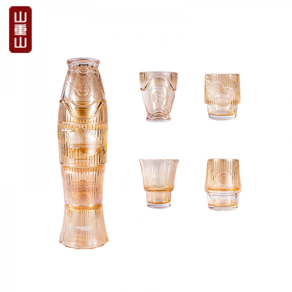 龙门锦鲤叠叠杯四件套 创意水杯家用中式茶杯茶具 开业礼品定制
