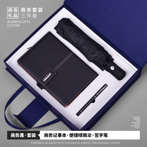尊享好礼商务笔记本+签字笔+雨伞三件套礼盒装 公司纪念礼品