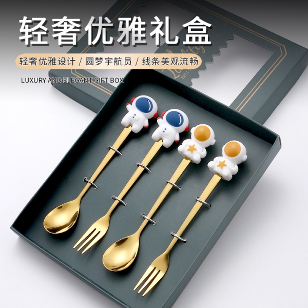 遨游太空创意宇航员勺叉餐具套装6件套 新奇小礼品