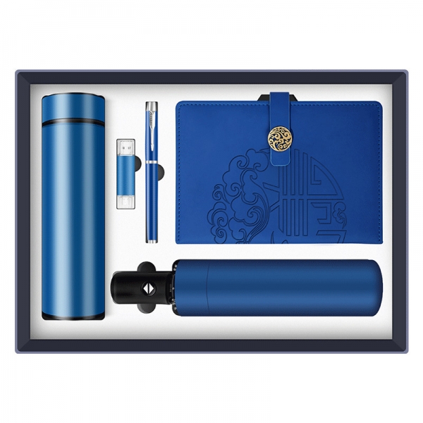 您当前的位置:首页>乐活办公>商务礼盒>多件套>商务A5平装本+450ml温控杯+16g优盘+金属笔+雨伞五件套套装 适合送客户的小礼品
