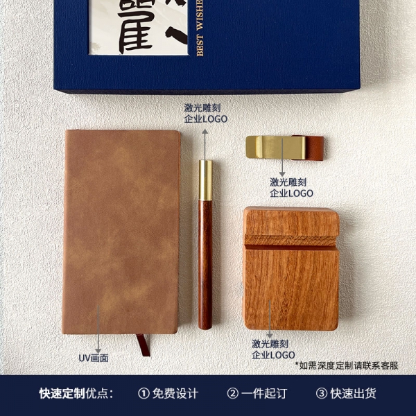 【自清欢003】红木签字笔+手机支架+笔记本+笔夹四件套套装 经济实用的小礼品