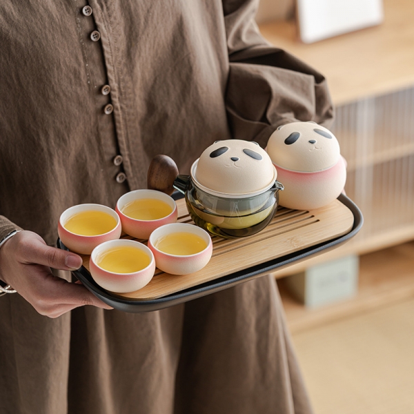 熊猫侧把壶功夫茶具套装 轻奢便携式旅行茶具套装 高端客户送什么礼品