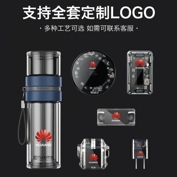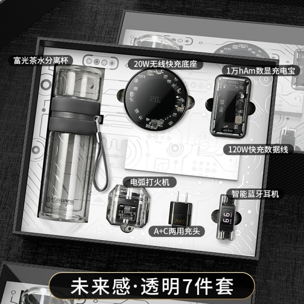 未来科技感透明7件套 富光杯+无线充+电源+打火机+充电头+蓝牙耳机礼盒装 高端礼品推荐