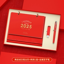 2025新年三件套 台历+U盘+笔 商务新年套装礼盒定制