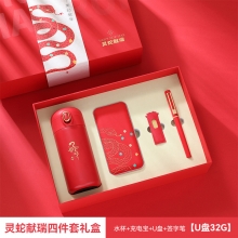 灵蛇献瑞四件套礼盒 316不锈钢水杯300ML+10000毫安充电宝+U盘32G+签字笔