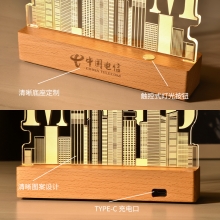 实木亚克力小夜灯纪念桌面摆件 商务创意礼品 城市文创旅游纪念品
