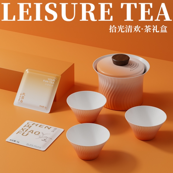 【拾光清欢TEA】渐变色茶壶+渐变色茶杯*3+ 福鼎白茶*12套装 周年庆送什么礼品