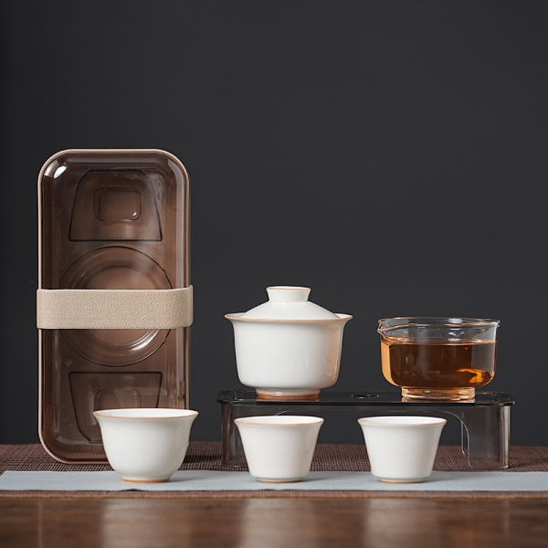 草木灰便携旅行茶具套装 户外陶瓷快客杯一壶三杯+收纳茶盘 商务伴手礼品