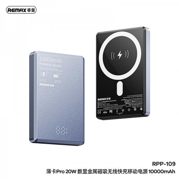 REMAX 薄卡pro数显金属磁吸无线充电宝 10000毫安PD20W快充移动电源 100元左右的活动奖品