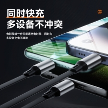 100W伸缩三合一快充数据线 一拖三充电线三头适用苹果华为安卓