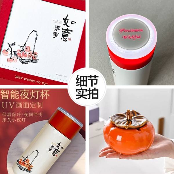 【事事如意】夜灯杯/常规保温杯+柿柿如意茶罐*2套装 商务小礼品