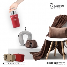 自由精神出行套装 护颈U型枕+多用靠枕毯(可拆卸)+肥宅快乐保温壶三件套 KS-853
