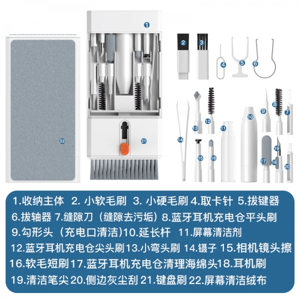 多功能清洁套装22合一 手机蓝牙耳机屏幕相机键盘清洁除尘工具