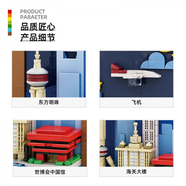 您当前的位置:首页>礼盒典藏>工艺纪念>城市印象>WANGE 城市明信片系列积木——上海城市明信片 上海天际线摆件 小颗粒积木拼装挂画摆件