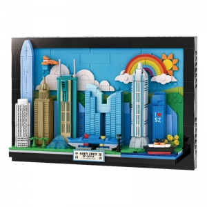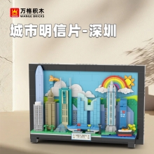 WANGE 城市明信片系列积木——深圳城市明信片 深圳天际线摆件 小颗粒积木拼装挂画摆件
