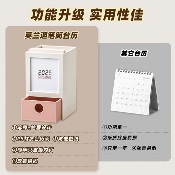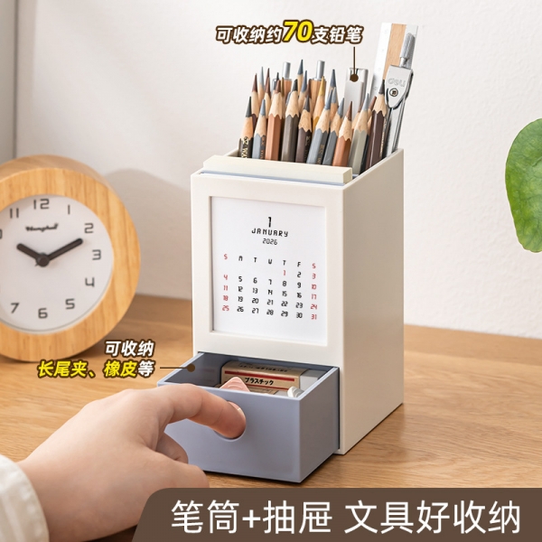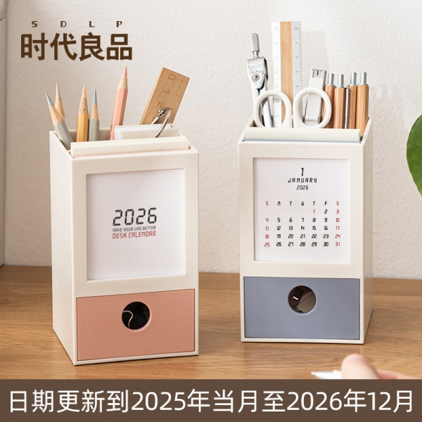 2026简约笔筒台历 ins风收纳盒月历 笔筒带抽屉收纳办公礼品定制