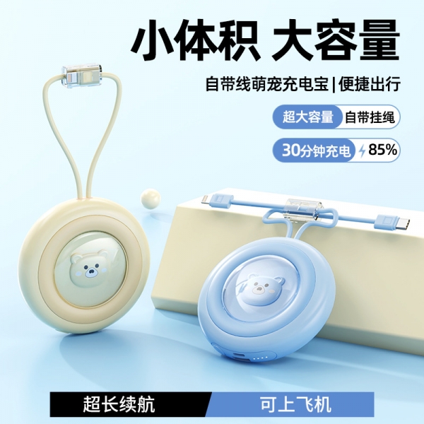 您当前的位置:首页>智能数码>手机周边>移动电源>卡通萌宠迷你充电宝20000毫安 自带线小巧便携移动电源