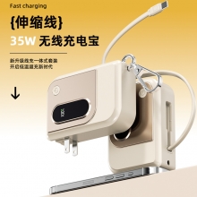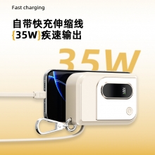 自带拉伸缩线35W充电宝10000毫安 便携可折叠插脚快充移动电源