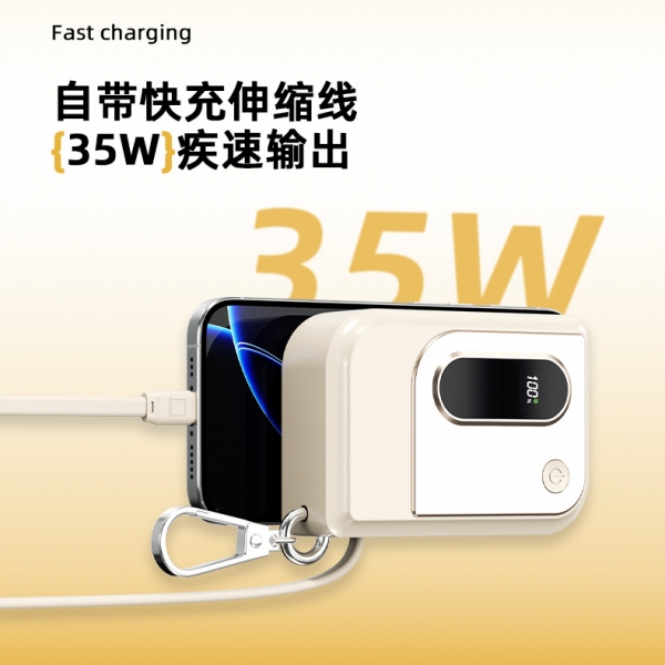 您当前的位置:首页>智能数码>手机周边>移动电源>自带拉伸缩线35W充电宝10000毫安 便携可折叠插脚快充移动电源