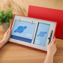 您当前的位置:首页>创意促销>广告促销>台历挂历>【宇宙星球】台历+笔记本+笔礼盒套装 2026年创意商务办公台历