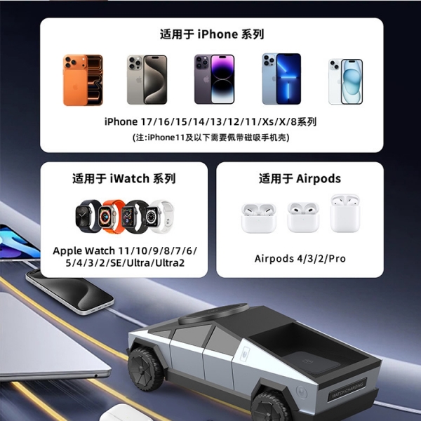 Cybertruck赛博皮卡三合一无线充 电器桌面充电支架 年会礼品