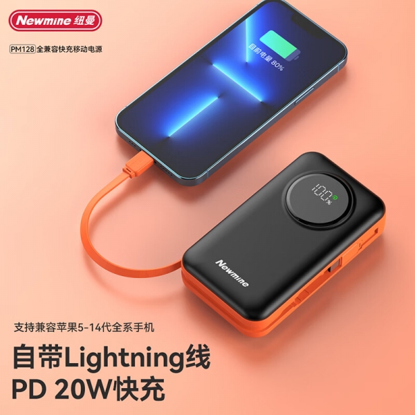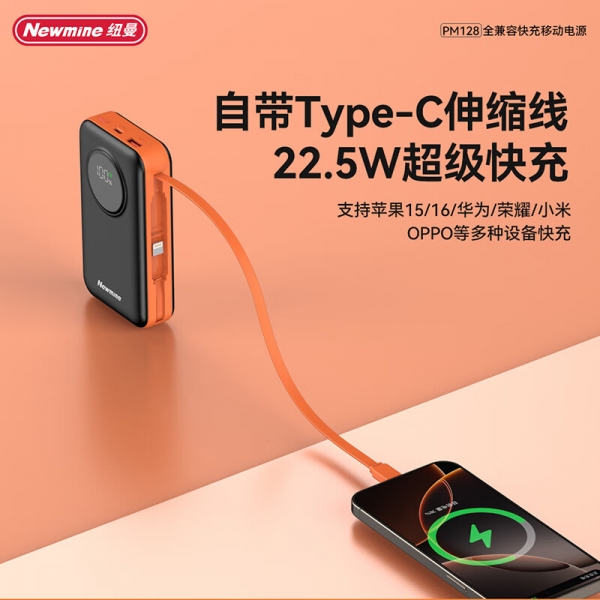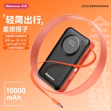 纽曼10000毫安伸缩线快充充电宝 自带55cm伸缩线大容量移动电源