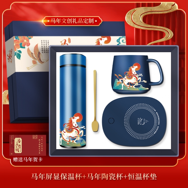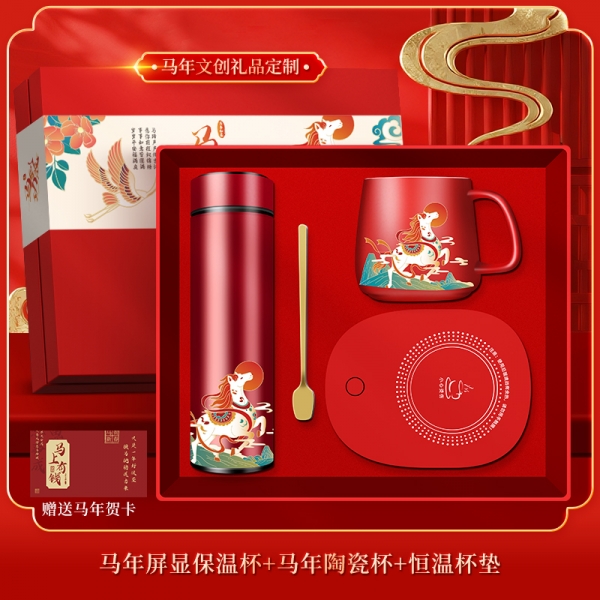 您当前的位置:首页>乐活办公>商务礼盒>三件套>2026年马年商务礼盒套装 暖杯垫+陶瓷杯+保温杯+勺子 年会礼品