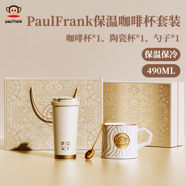 大嘴猴(PAUL FRANK) 陶瓷杯+316不锈钢保温咖啡杯+勺子 实用杯壶套装