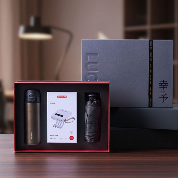 您当前的位置:首页>乐活办公>商务礼盒>三件套>【睿能三件套】实用商务礼盒三件套 乐扣保温杯+纽曼电源+晴雨两用口袋伞 员工福利礼品