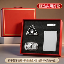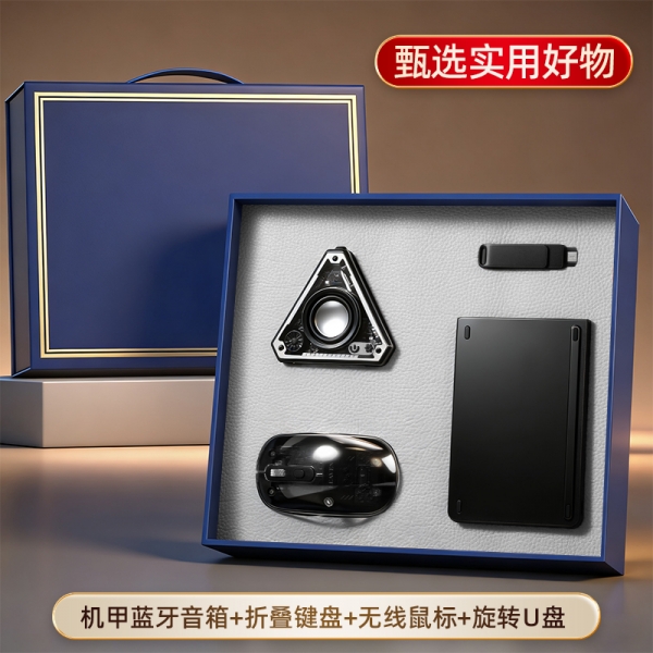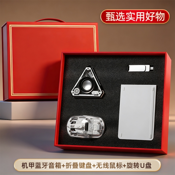 简约实用四件套 机甲V2蓝牙音箱+折叠键盘+无线透明鼠标+U盘32G 活动伴手礼