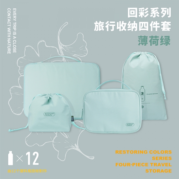 回彩系列 手拎洗漱包+衣物收纳袋+立体抽绳袋+抽绳鞋袋 旅行收纳四件套(经典版)EB4602