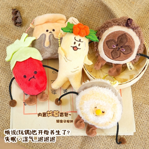 毛绒钥匙扣链 可爱人参枸杞中草药玩偶书包挂件