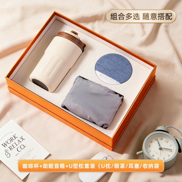 您当前的位置:首页>乐活办公>商务礼盒>三件套>特色实用三件套 按压式充气U型枕+316数显咖啡杯+助眠音箱 员工福利